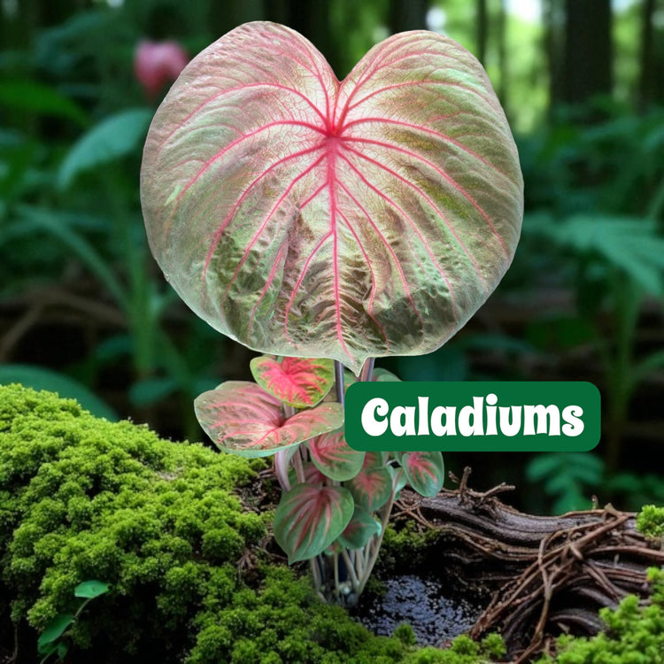 Caladiums are the one of the most colourful foliage species in the plant word. I actually call them the "Ugly Duckling" of the Plant World, as juvenile they look totally different to their matured form - Strap, Lotus to Diamond Heads and more. The colour and pattern on some hybrids are truly spectacular and amazing. Some Plant Lovers do shy away from them as they go dormant over winter in the colder regions, and by Spring they start to pop their heads to reveal something extraordinary.